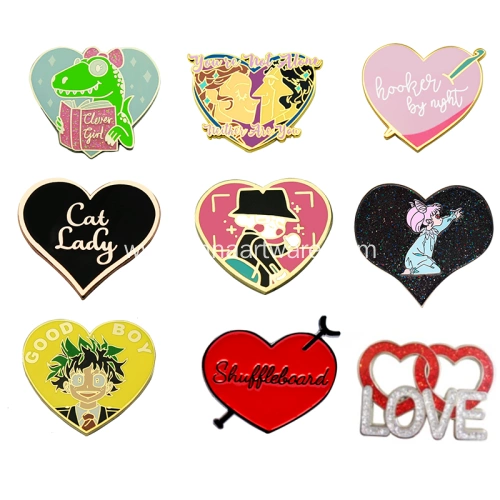 Custom Glitter Powder Heart Shape Hard Enamel Emblem